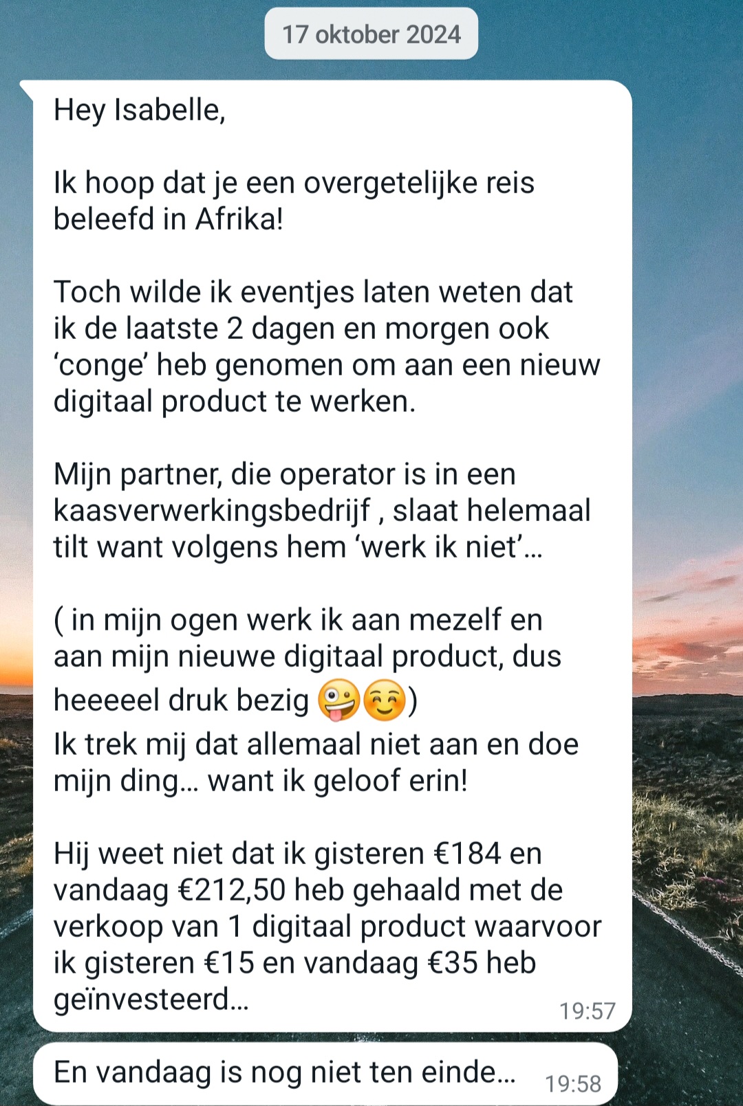 Digitale producten zijn schaalbaar. Je maakt ze één keer en verkoopt ze daarna eindeloos vaak zonder extra werk.